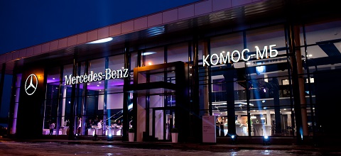 Предприятие «Комос-МБ» расположилось на Славянском шоссе. Шоу-рум рассчитан на презентацию семи легковых и двух малотоннажных автомобилей. Кроме того, среди основных элементов центра можно выделить зону для презентации S-Klasse. На сервисном участке находятся 10 рабочих постов, склад запчастей, мойка и два поста интерактивной приемки с линиями диагностики.