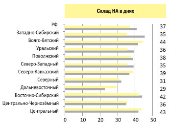 Вместе с тем проблема дефицита оборотных средств заставляет дилеров сокращать складские запасы новых автомобилей. В среднем этот показатель составил 37 дней (-11%). По-прежнему мало кто из импортеров идет на уступки своим партнерам и улучшает условия консигнации, отмечают в ASE. По данным компании, заметно выпал из тренда только Дальневосточный округ – здесь после резкого падения в прежние периоды складские запасы выросли до 29 дней (+32%).