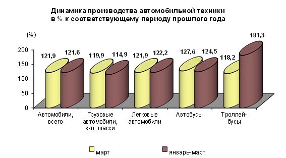 Доля иностранных марок в общем выпуске легковых автомобилей в России составила 75,3% (73,2% годом ранее). В целом за первую четверть года автопроизводители отгрузили потребителям 288 тысяч машин (+20%).