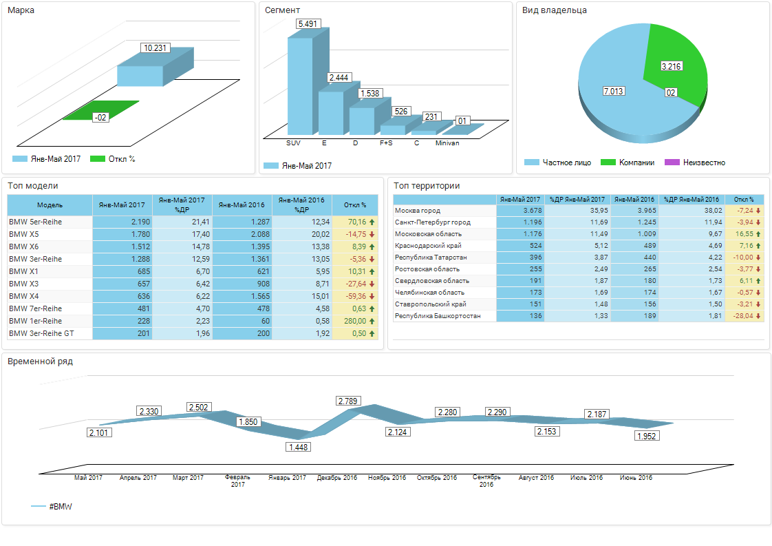 Обзор бренда BMW / РС / Регистрации новых / Январь-май 2017г. / Россия