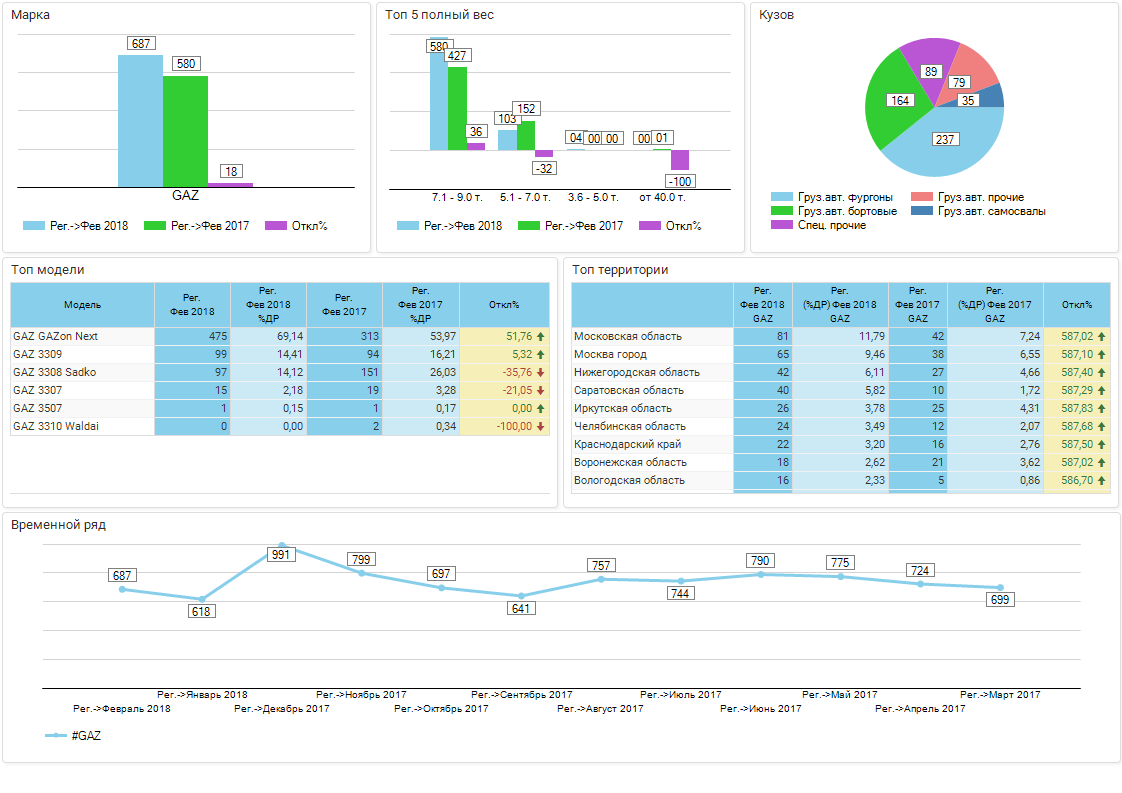 Обзор бренда GAZ / HCV / Регистрации новых / Февраль 2018 г. / Россия