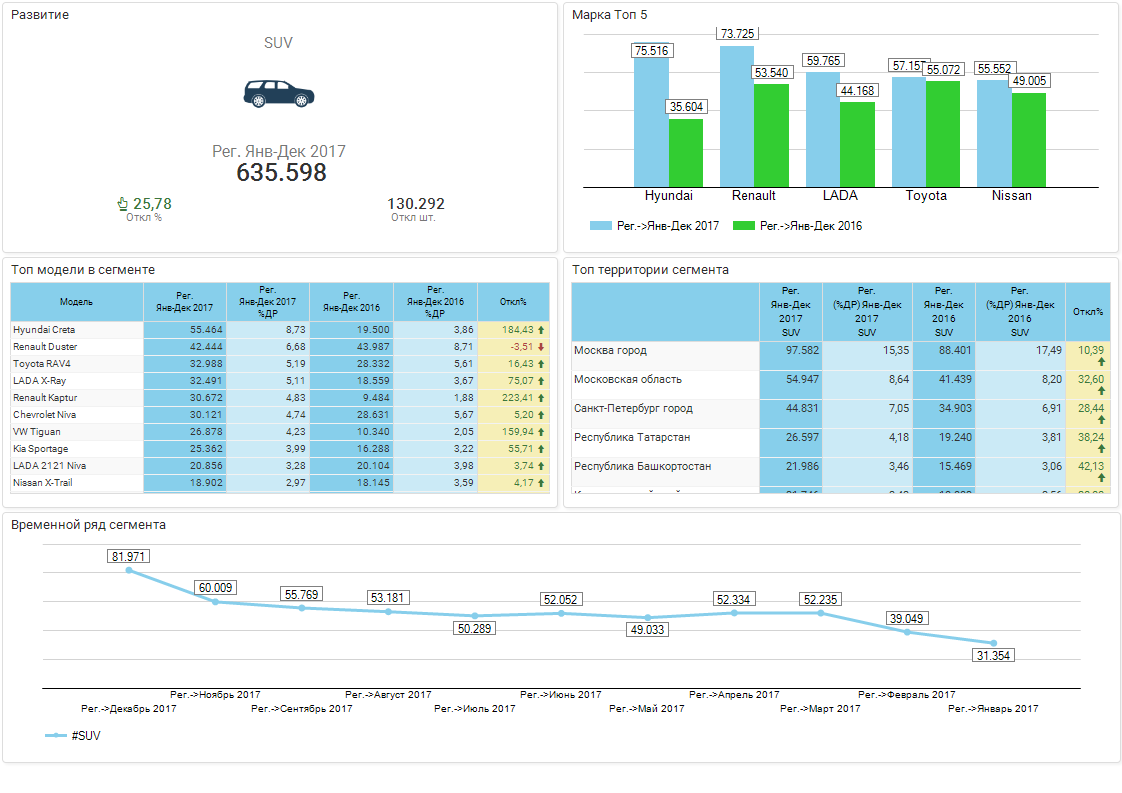 Обзор сегмента SUV / РС / Регистрации новых / Январь-декабрь 2017г. / Россия