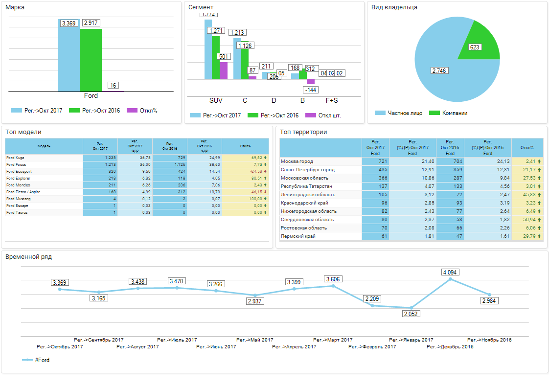 Обзор бренда FORD / РС / Регистрации новых / Октябрь 2017г. / Россия
