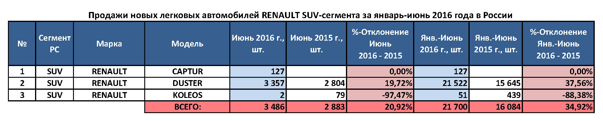 По данным статистики «Автостат Инфо», марка Renault реализовала на российском рынке SUV в первом полугодии 21 700 авто, на 35% больше, чем годом ранее. Недавно стало известно также о планах Renault начать экспорт российского Kaptur на зарубежные рынки.