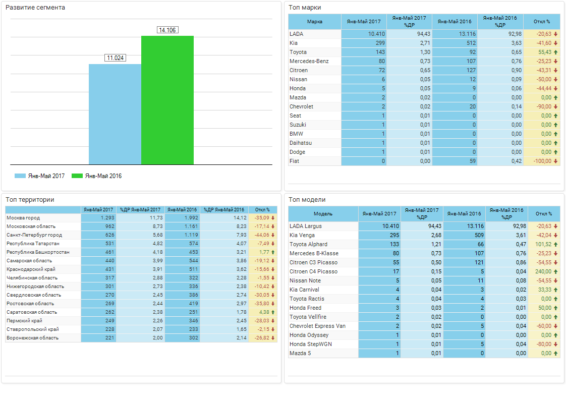 По данным исследования «Автостат Инфо», в сегменте минивэнов на авторынке России за январь-май 2017 года было продано автомобилей на сумму 7,56 млрд рублей. Большую часть этого оборота (86,45%) составила модель LADA Largus.