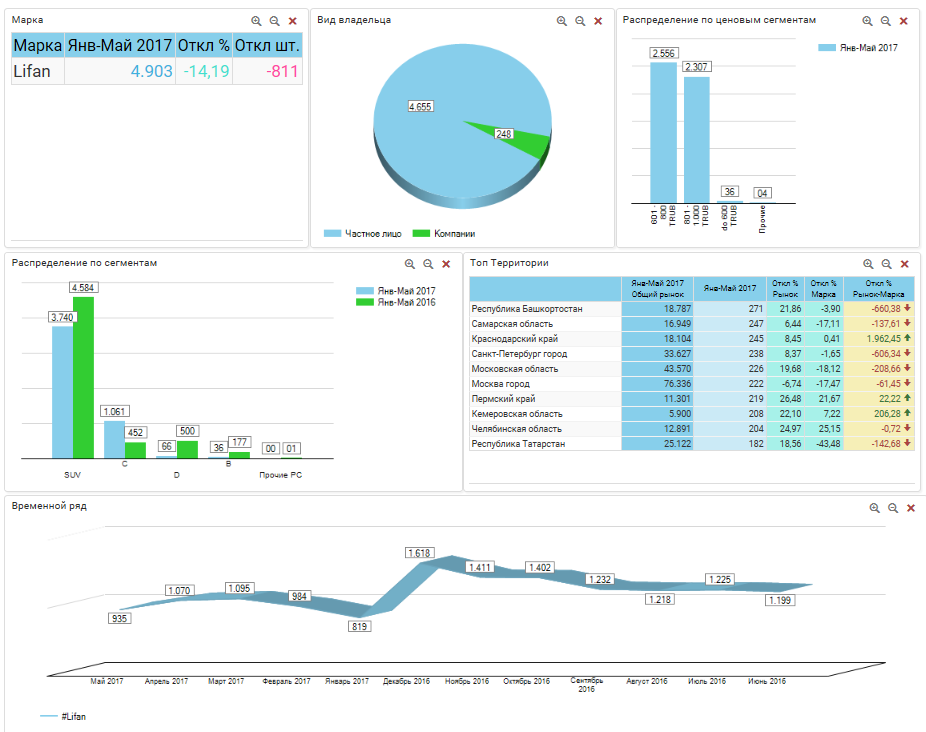 Согласно данным отчета АЕБ, среди автомобильных марок из Китая первое место по продажам автомобилей в РФ за I полугодие 2017 года занимает LIFAN.