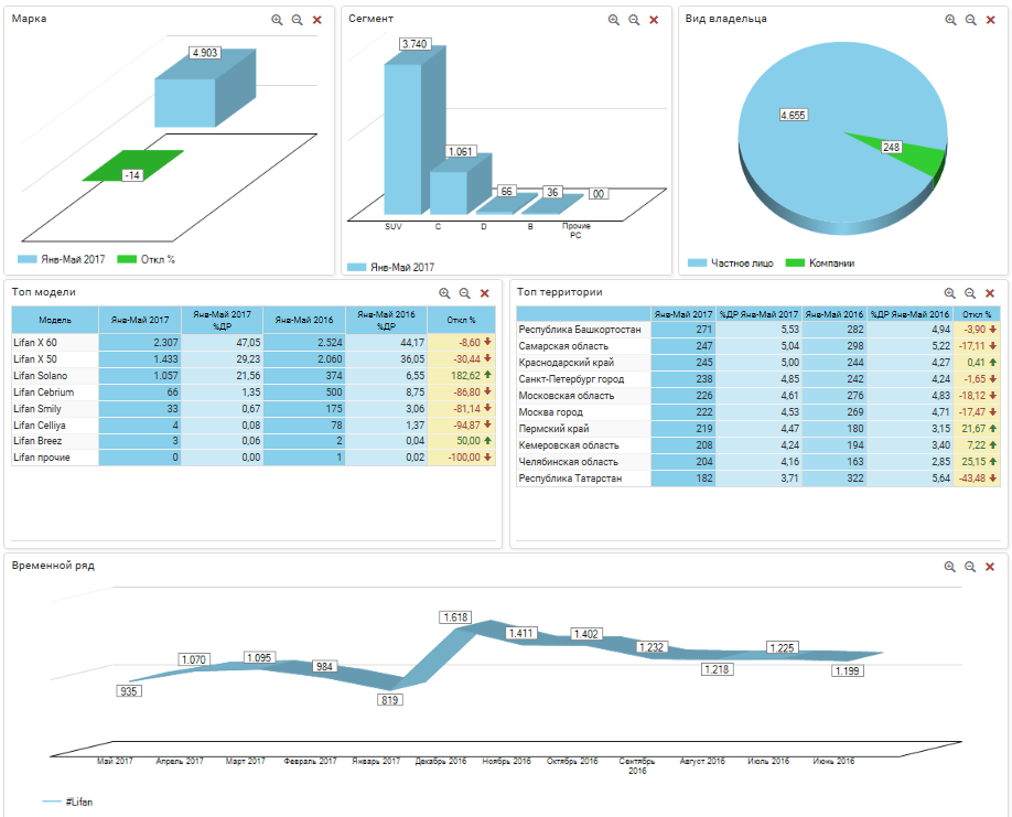 LIFAN / РС / Регистрации новых / Январь-май 2017г. / Россия