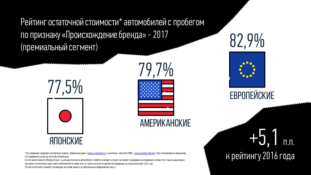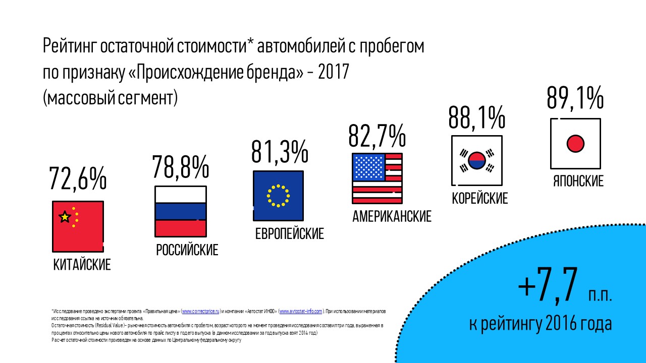 Эксперты проекта «Правильная цена» и компании «Автостат ИНФО» провели совместное исследование на рынке трехлетних легковых автомобилей с пробегом и выделили наиболее ликвидные автомобили по признаку «Происхождение бренда».
