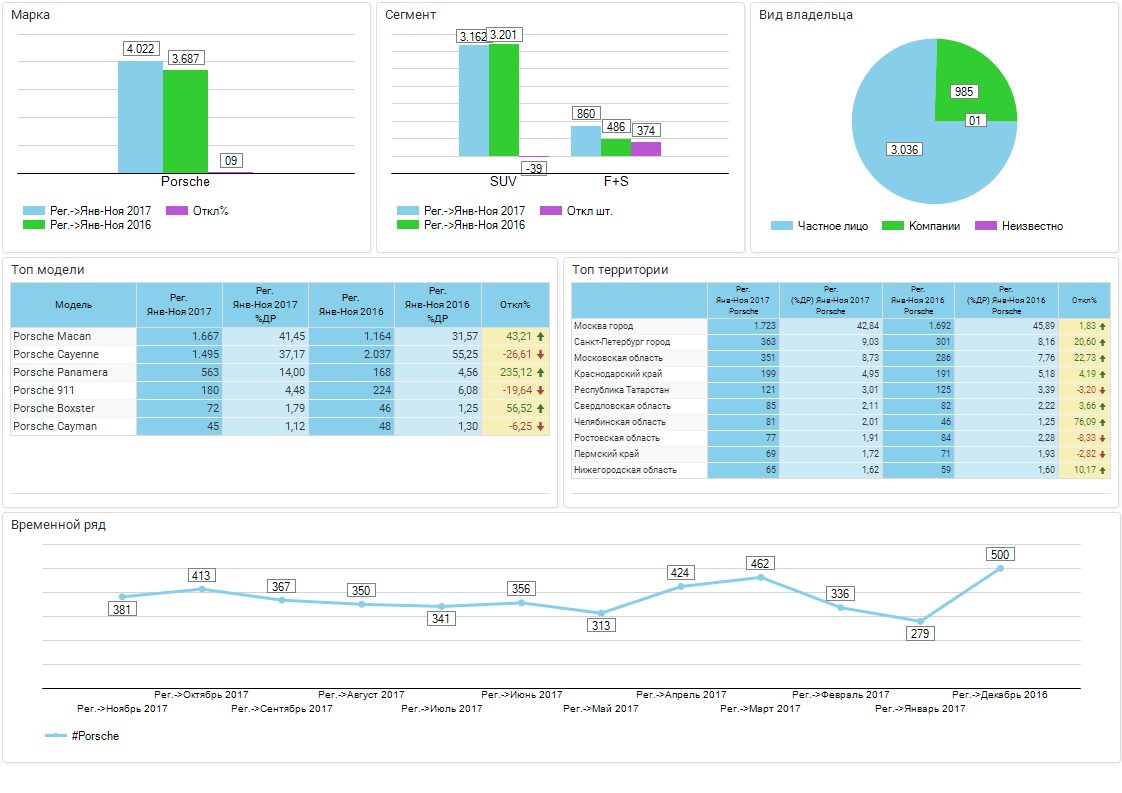 Обзор бренда PORSCHE / РС / Регистрации новых / Январь-ноябрь 2017г. / Россия