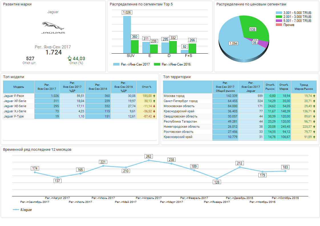 Обзор бренда JAGUAR / РС / Регистрации новых / Январь-сентябрь 2017г. / Россия