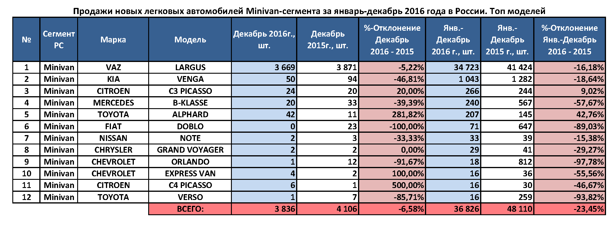 Добавим, что в декабре прошлого года россияне купили 3836 минивэнов, на 6,6% меньше, чем за аналогичный месяц 2015 года.