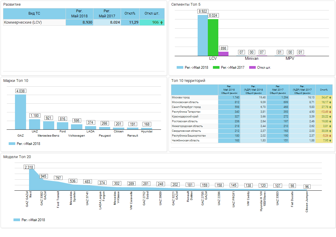 Обзор рынка LCV / Регистрации новых / Май 2018 г. / Россия
