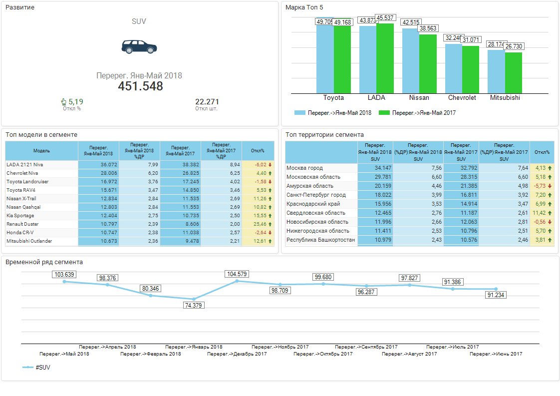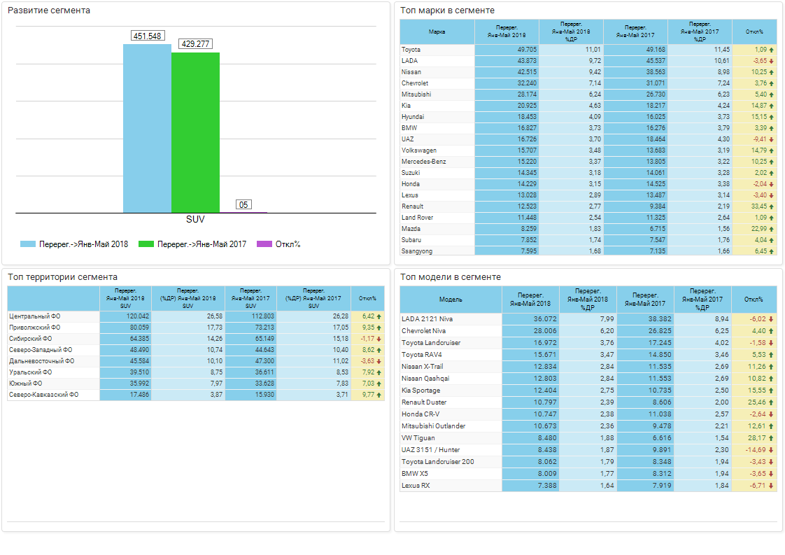 Обзор сегмента SUV / РС / Вторичные регистрации / Январь-Май 2018 г. / Россия