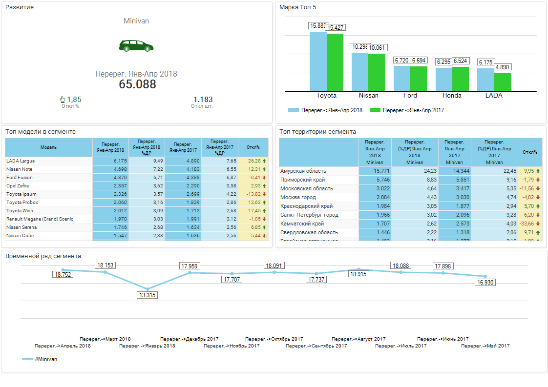 Обзор сегмента MINIVAN / РС / Вторичные регистрации / Январь-Апрель 2018 г. / Россия