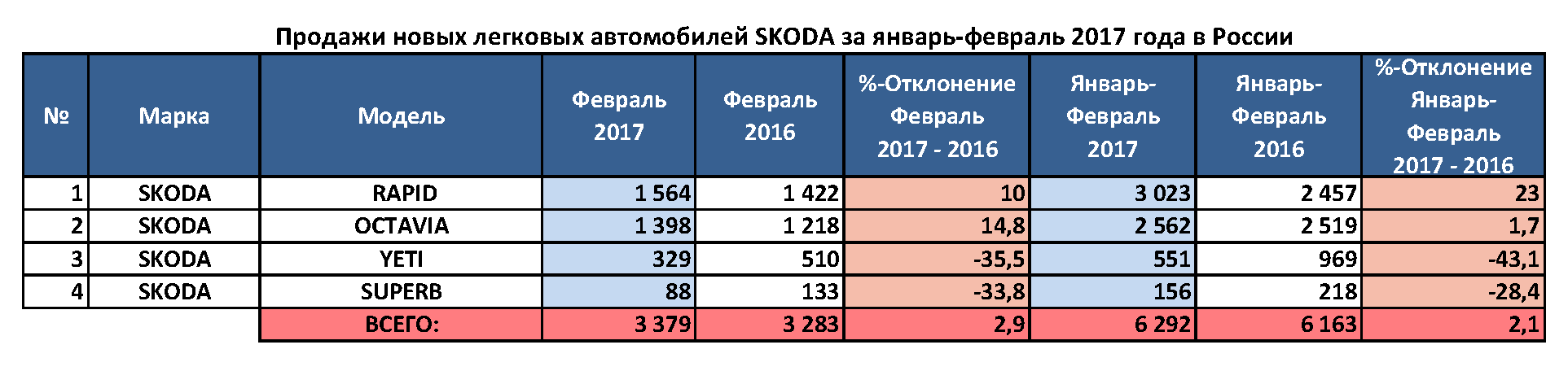 Ранее «Автостат Инфо» сообщал, что в феврале 2017 года российские покупатели приобрели 3379 автомобилей Skoda, на 2,9% больше, чем за тот же период прошлого года.