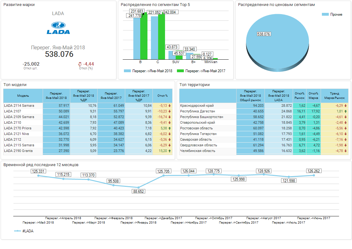 Обзор бренда LADA / РС / Вторичные регистрации / Январь-Май 2018 г. / Россия