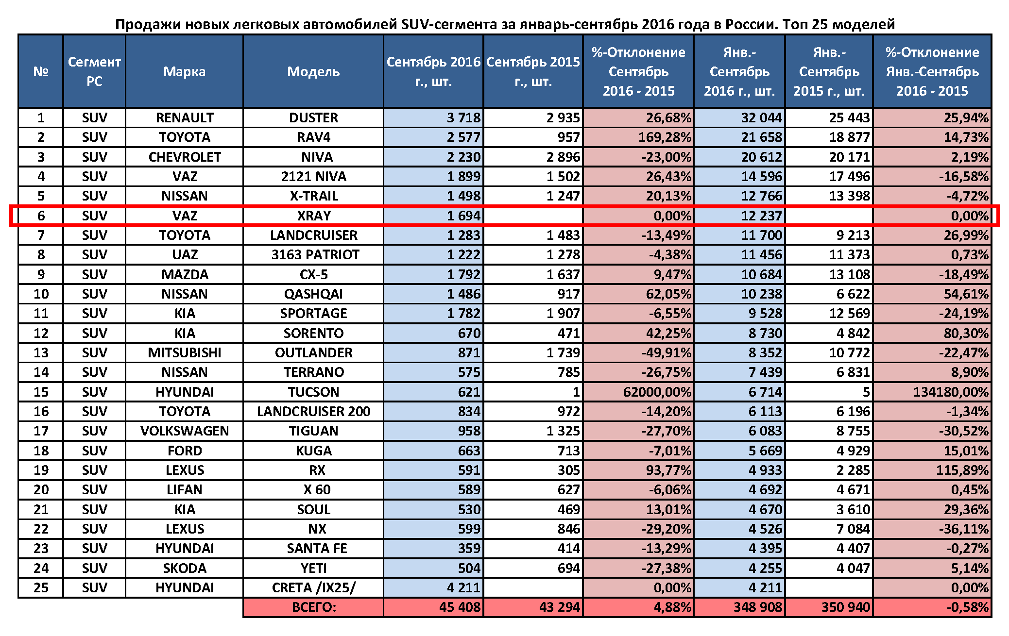 Согласно исследованию «Автостат Инфо», Lada XRAY занимает второе место среди отечественных SUV по продажам за три квартала 2016 года. За отчетный период в РФ было продано 12 237 таких машин. На первом месте среди российских внедорожников — Lada 4×4 с показателем продаж в 20 612 шт. (+2,2%), а на третьем — «УАЗ Патриот» (11 456 шт., +0,7%).