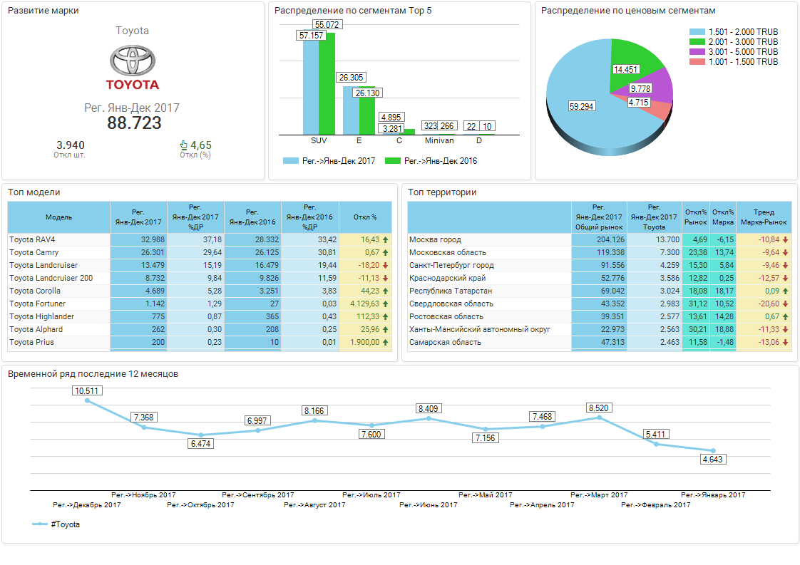 Обзор бренда TOYOTA / РС / Регистрации новых / Январь-декабрь 2017г. / Россия