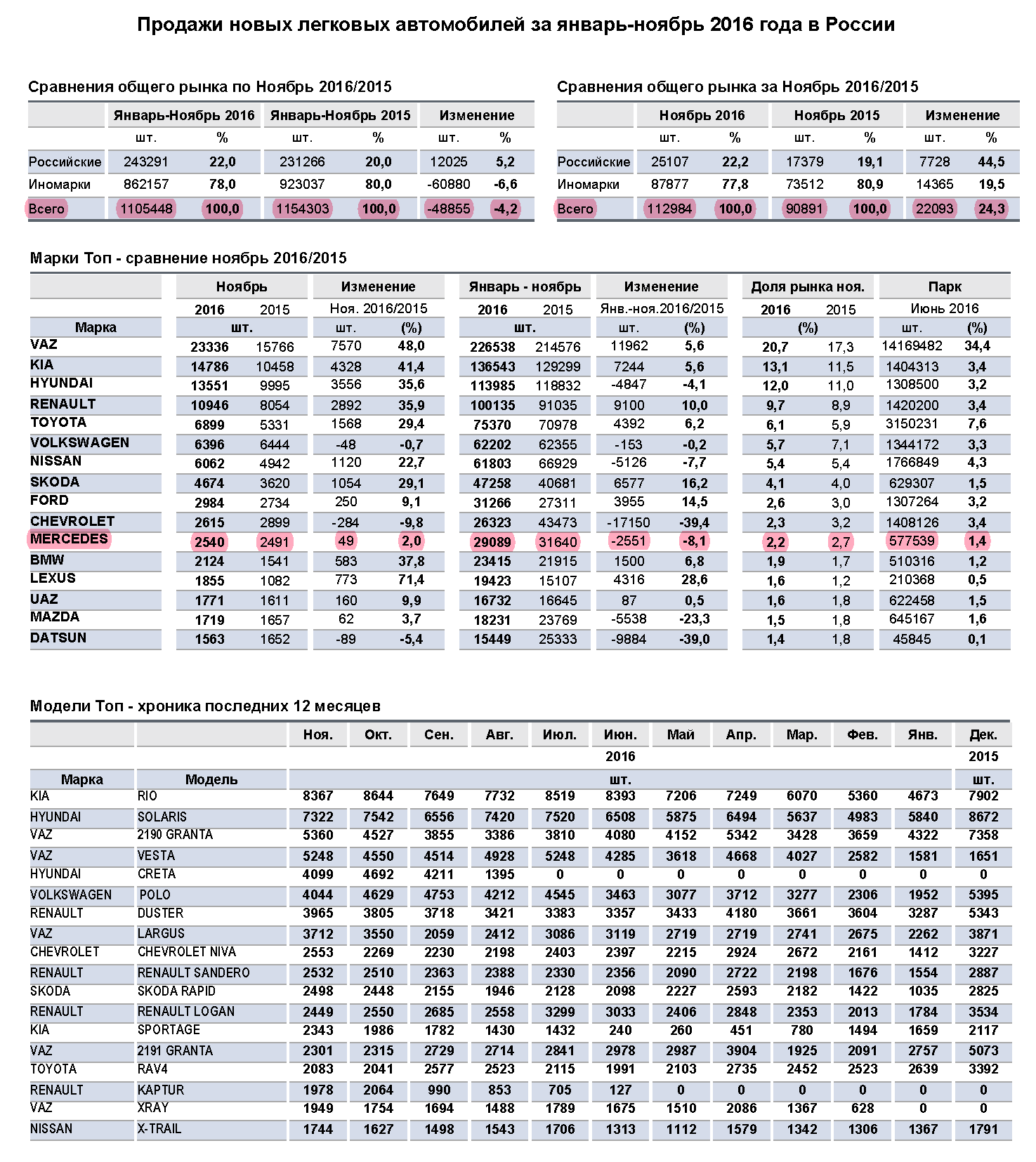 Добавим, что на российском рынке за 11 месяцев 2016 года, по данным «Автостат Инфо», было продано 29 089 автомобилей Mercedes-Benz, на 8% меньше, чем за тот же период 2015 года.