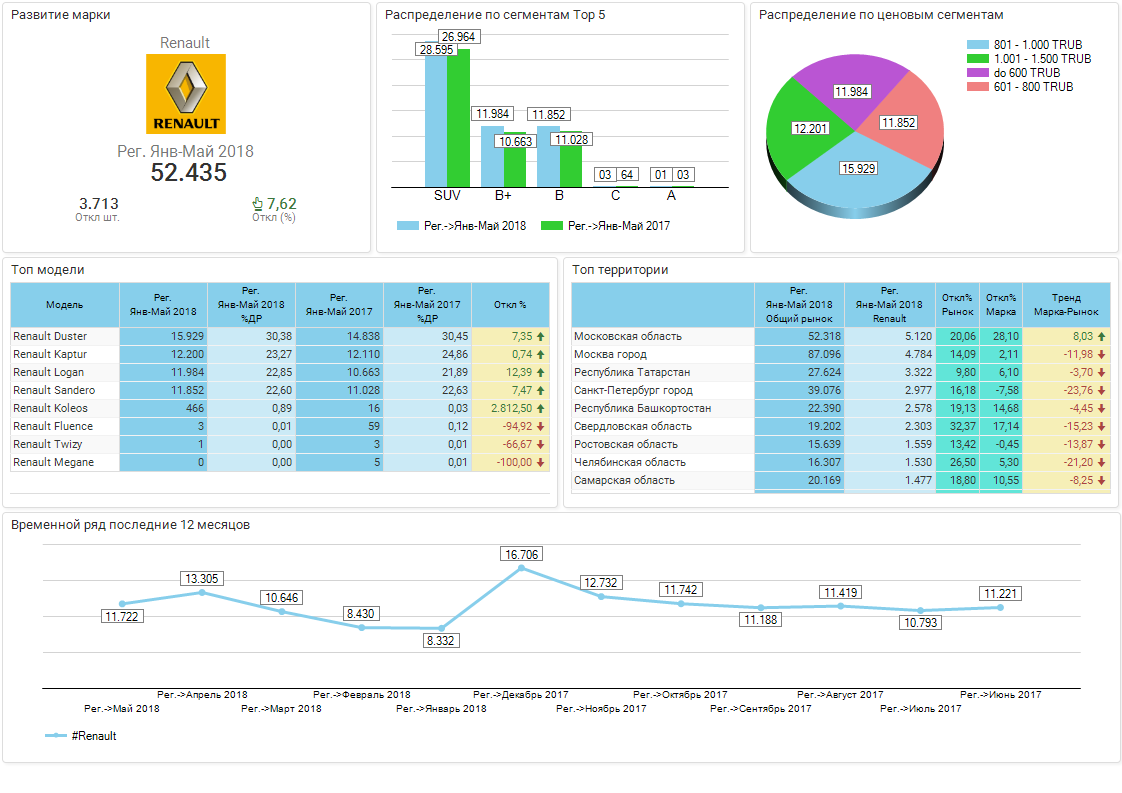 Обзор бренда RENAULT / РС / Регистрации новых / Январь-Май 2018 г. / Россия