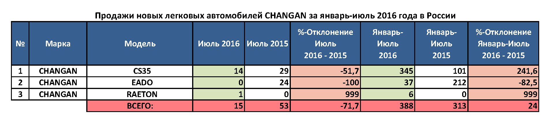 С начала года и по июль включительно в России, согласно данным статистики «Автостат Инфо», было реализовано 388 автомобилей Changan, на 24% больше, чем годом ранее.