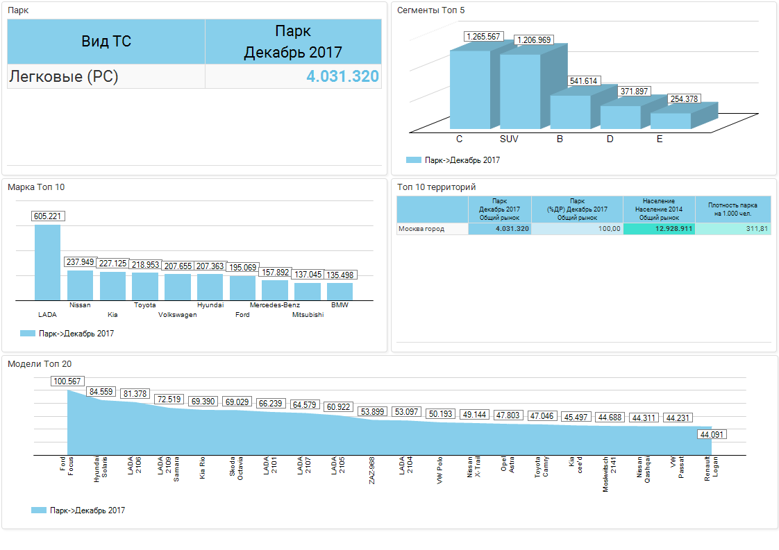 Исследование «Автостат Инфо» показало, что всего в парке легковых автомобилей в Москве насчитывается 4 031 334 авто по состоянию на начало 2018 года. Больше всего в столичном автопарке машин марки LADA — 605 224 ед.