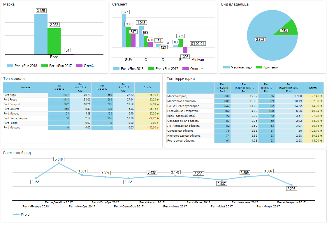 Обзор бренда FORD / РС / Регистрации новых / Январь 2018 г. / Россия