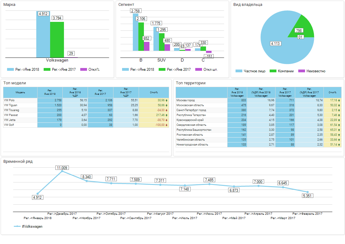 Обзор бренда VOLKSWAGEN / РС / Регистрации новых / Январь 2018 г. / Россия