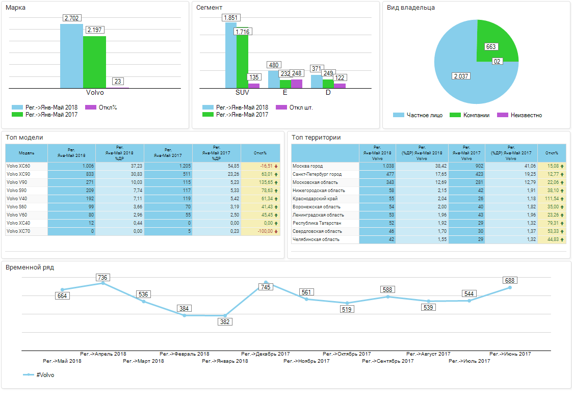 Обзор бренда VOLVO / РС / Регистрации новых / Январь-Май 2018 г. / Россия